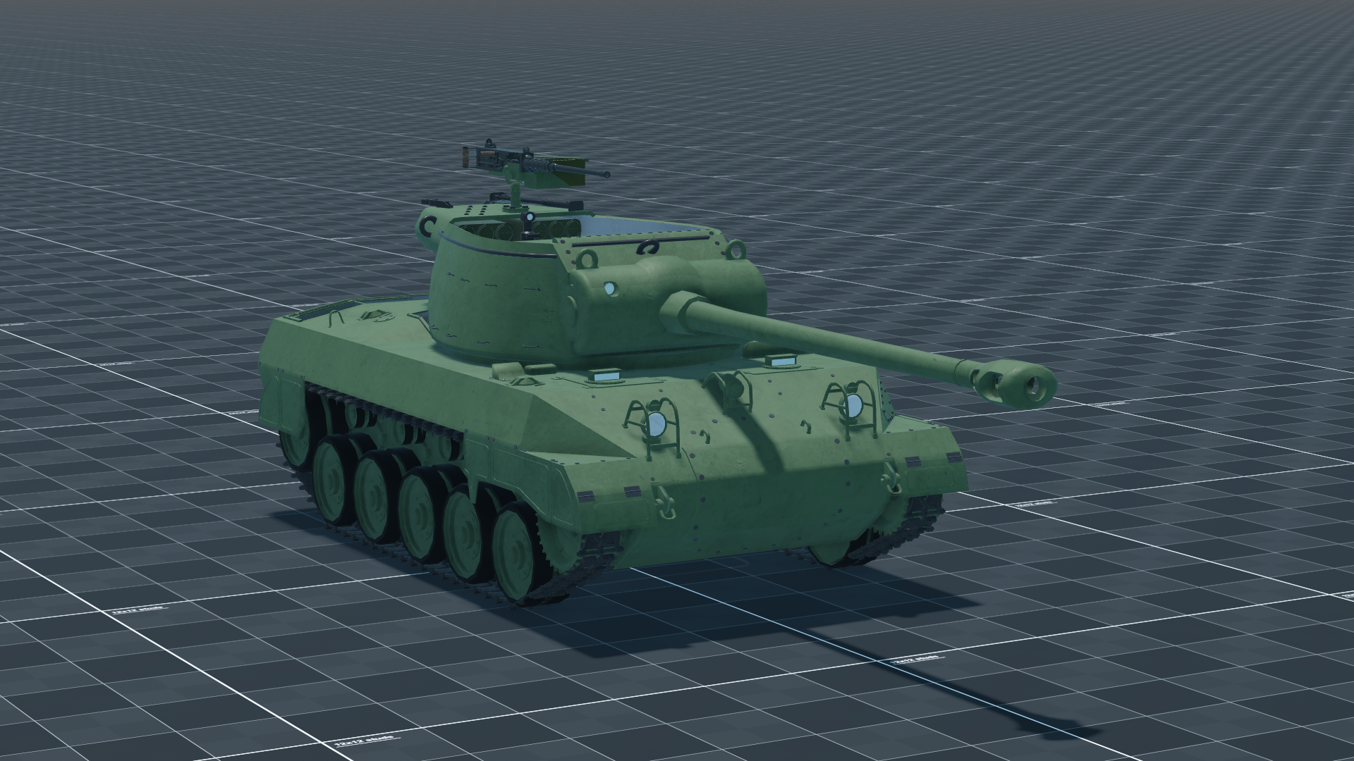The 90mm M3 is served by 4x and 8x telescope sights without a rangefinder; the commander has a stabilized 12.7mm M2 for anti-aircraft use. The Super Hellcat combines the Hellcat’s mobility with heavy-tank-level firepower in a light, fast package.