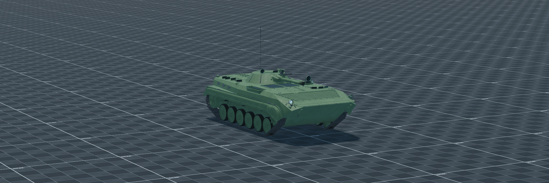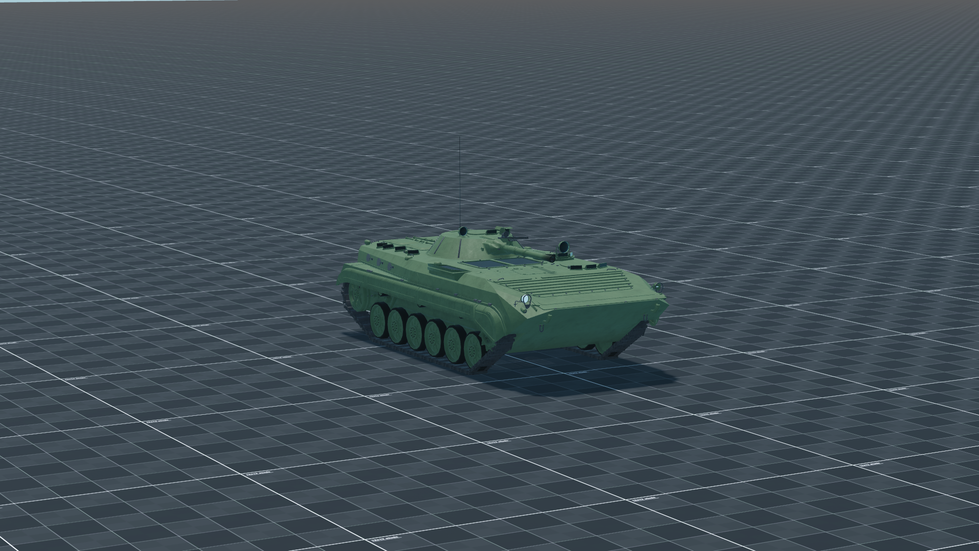 - The BMP-1 is an Infantry Fighting Vehicle that entered Soviet service in 1966, introducing the concept of a tracked, amphibious vehicle capable of carrying infantry and engaging armour with a main gun and ATGM capability. Its 73mm 2A28 low-pressure gun fired PG-9 HEAT and OG-9 HE rounds, and the design influenced later IFVs worldwide. The 13.4 t hull is crewed by a driver, gunner, and commander plus six passengers, and is powered by a UTD-20 diesel producing 300 hp (22.4 hp/t) for 65 km/h on land and 7 km/h afloat. The turret has no stabilizer; the gunner has a 20 deg/s horizontal and 6 deg/s vertical traverse with elevation from -4° to 30°. A 7.62mm PKT is mounted coaxially. The vehicle is fitted with an engine smoke system but no laser rangefinder or modern fire control.