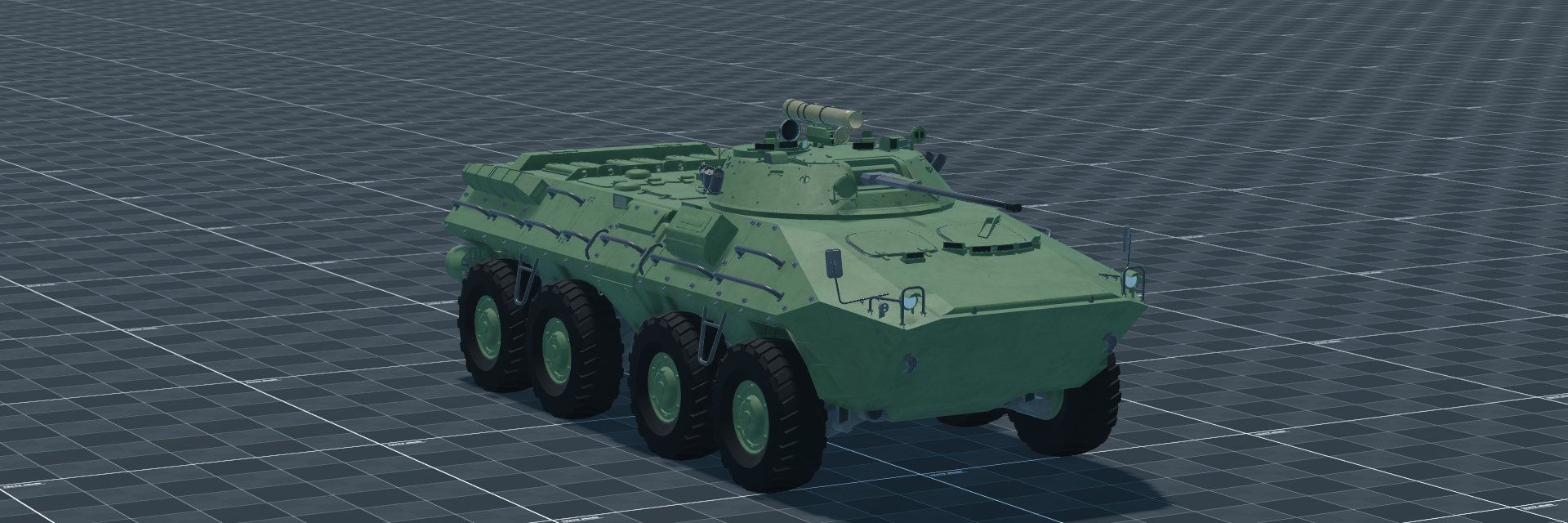 - The BTR-90 is an Armoured Personnel Carrier developed in Russia in the 1990s, mounting an IFV-style turret with a 30 mm cannon and ATGM on an 8×8 hull. It was never adopted in large numbers by the Russian Army but represented a step toward heavier firepower on APC chassis. The 22 t wheeled vehicle carries a crew of three and seven passengers and is amphibious at 9 km/h. It reaches 100 km/h forward and reverse. The ChTZ 510 diesel produces 510 hp for 23.2 hp/t and an automatic gearbox.