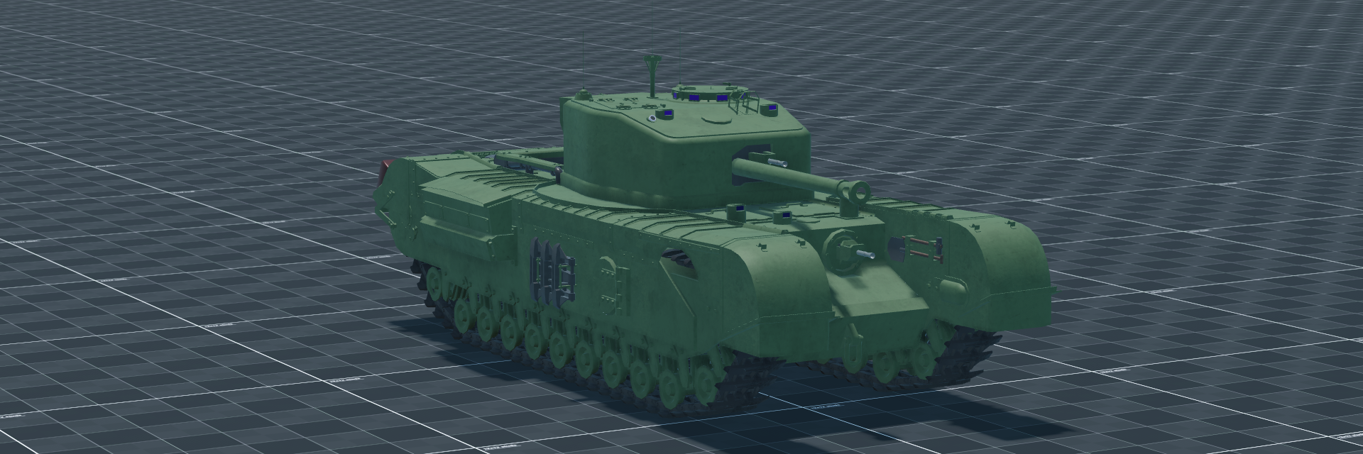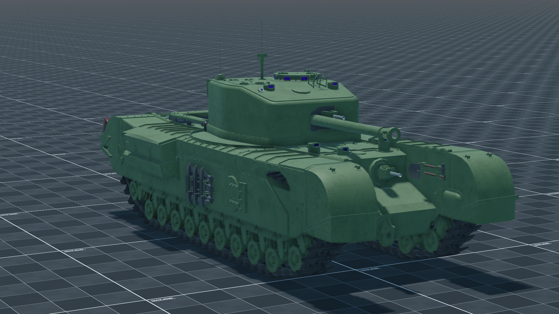 - The Churchill VII is a Heavy Tank and the final major production variant of the British Churchill infantry tank, introduced in 1944 with thicker armour and a cast turret. The Churchill series, built by Vauxhall Motors, served from 1941 through the Korean War and was valued for its ability to cross difficult terrain and absorb punishment. The Mk VII weighs 41 tonnes and is crewed by five — driver, gunner, bow gunner, commander, and loader — on a tracked chassis. A Bedford 12-cylinder diesel produces 350 horsepower for 8.5 hp/t and a modest top speed of 20.4 km/h forward and 2.5 km/h reverse, with neutral steering.