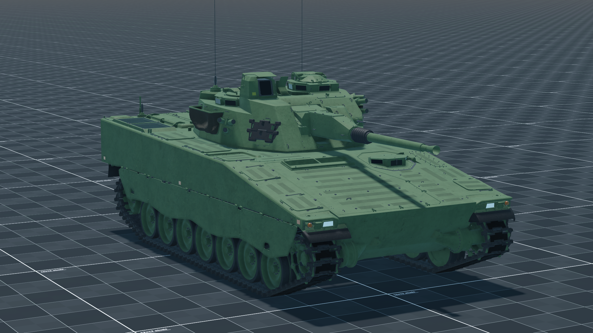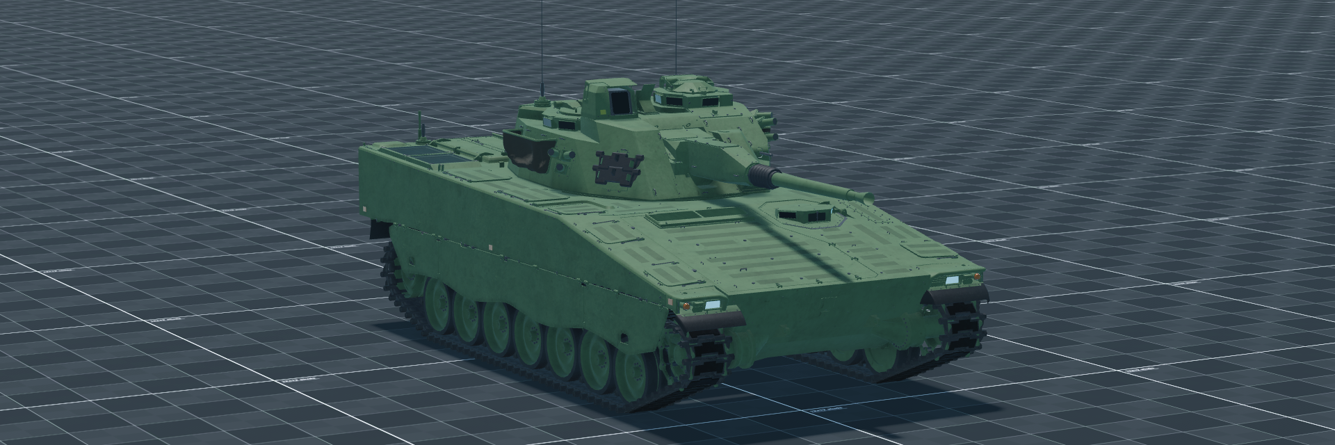 The 40mm Akan m/70B is in a stabilized turret with a 24-round magazine and is paired with a 7.62mm ksp 39 C. The gunner has a laser rangefinder, Gen 2 thermals, 8x zoom, and FCS with lead; the vehicle has smoke grenades but no horizontal stabilizer for the main gun.
