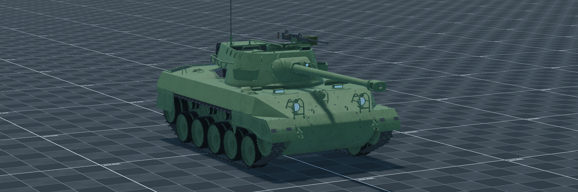 Main armament is the 76mm M1 cannon with 4x and 8x telescope sights and no rangefinder; the commander’s position is stabilized and mounts a 12.7mm M2 machine gun for anti-aircraft and local defense. The main gun has no stabilizer, and the vehicle relies on speed and agility to survive on the battlefield.