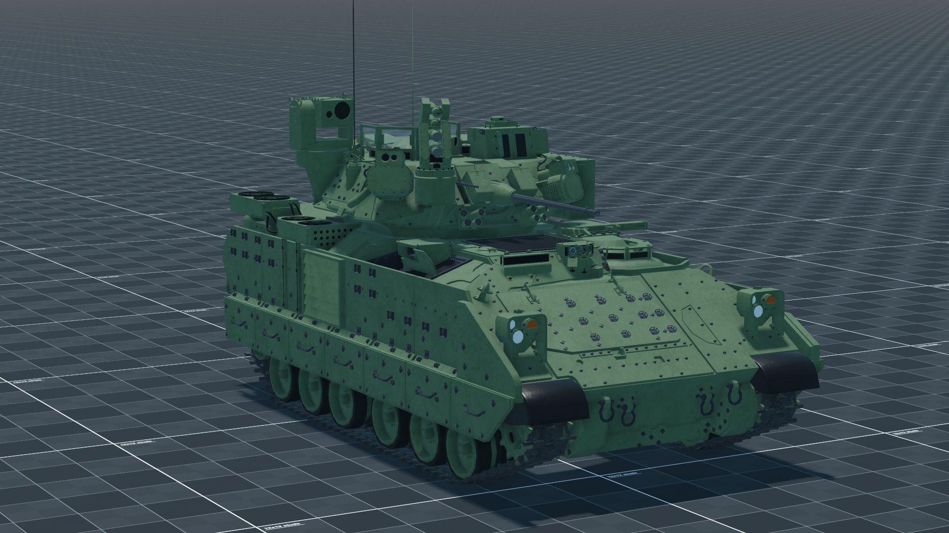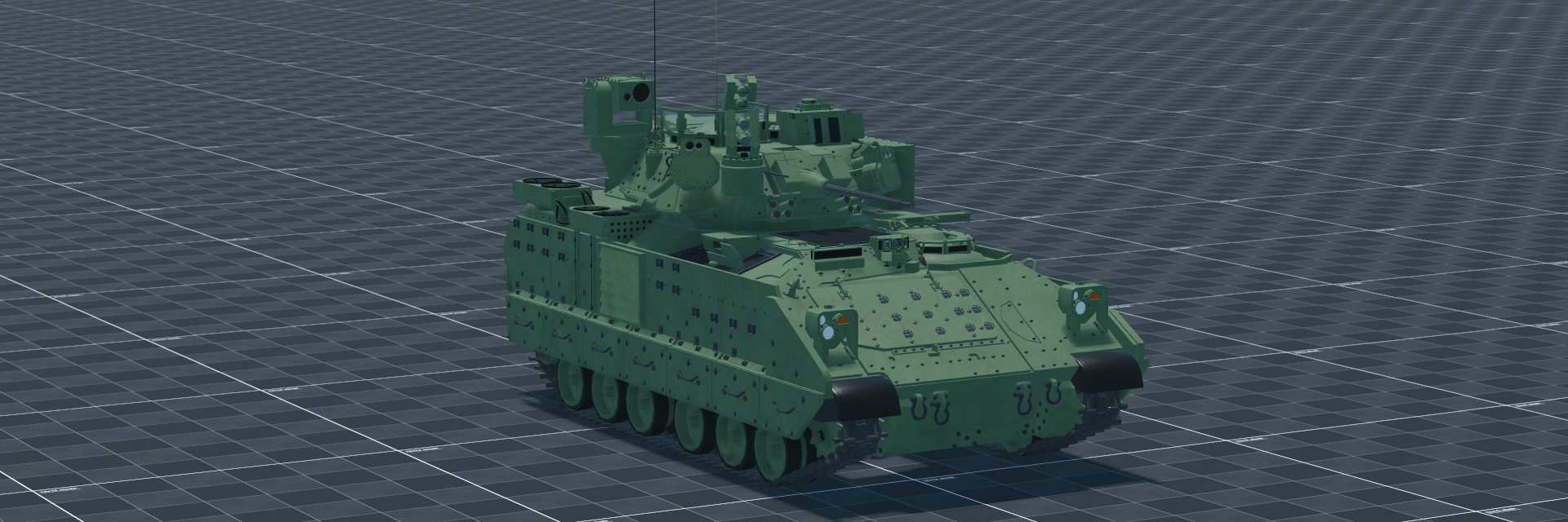 - The M2A4E1 is an Infantry Fighting Vehicle representing an upgraded M2 Bradley with improved powerpack, optics, and active protection. The M2 Bradley entered U.S. service in the 1980s to carry infantry and support them with a 25 mm cannon and TOW missiles; the A4 and E1 variants add reliability and survivability improvements. Weighing 35.9 tonnes, it carries a driver, gunner, commander, and six passengers and is tracked. The VTA903E-T675 diesel produces 675 horsepower for 18.8 hp/t, 66 km/h top speed, neutral steering, and an automatic transmission.