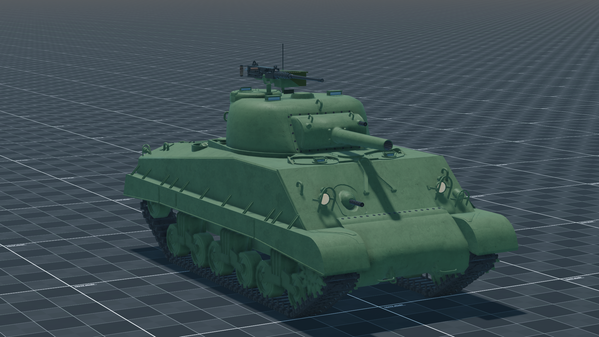 - The M4A3 (105) is a Medium Tank variant of the American M4 Sherman armed with a 105 mm howitzer for infantry and fortification support. The M4A3 series used the Ford GAA gasoline V8 and was the principal variant supplied to U.S. Army units in the latter part of the war; the 105 mm M4 howitzer version saw use in the Pacific and in Europe for bunker-busting and indirect fire. The vehicle weighs 31.7 tonnes and is crewed by five: driver, gunner, bow gunner, commander, and loader. The Ford GAA V8 produces 500 horsepower for a 15.8 hp/t power-to-weight ratio and a top speed of 42 km/h.