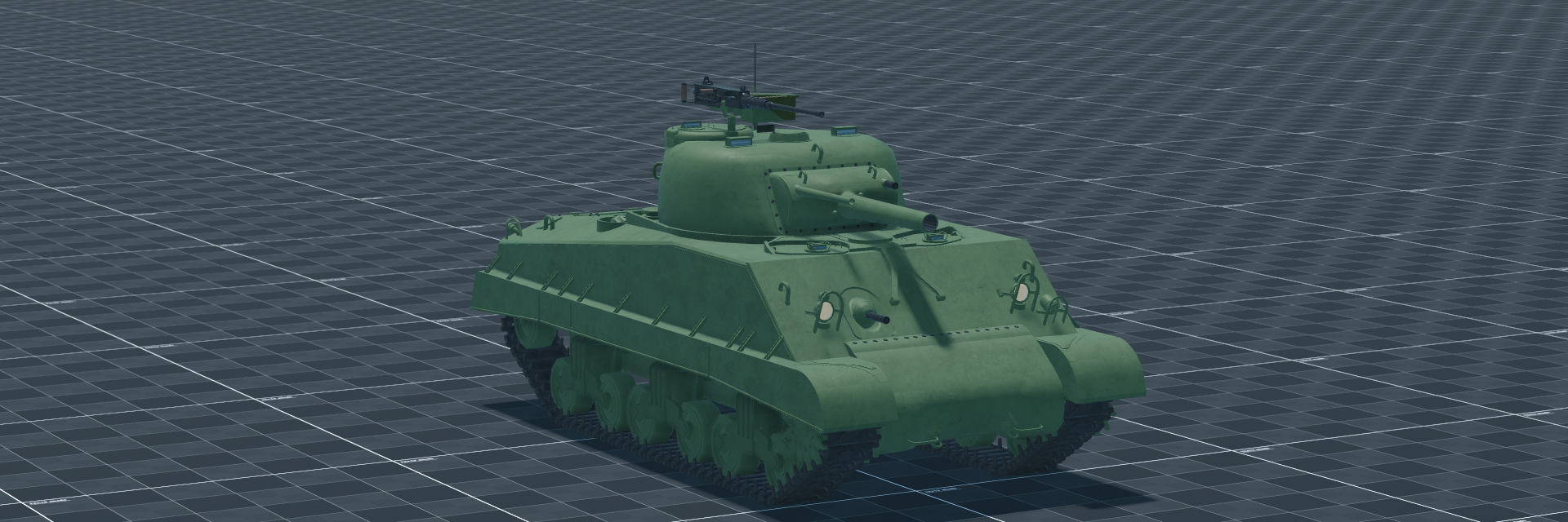 The gunner turret mounts the 105 mm M4 howitzer (HE and M67 shot), a coaxial .30 cal M1919, and the H5 Flamethrower with napalm; the commander and bow gunner have 12.7mm M2 and .30 cal M1919 respectively. The main gun has a 10-second reload and 1x/6x periscope sight with no stabilizer on the howitzer. The flamethrower provided devastating short-range effect against fortifications and infantry.