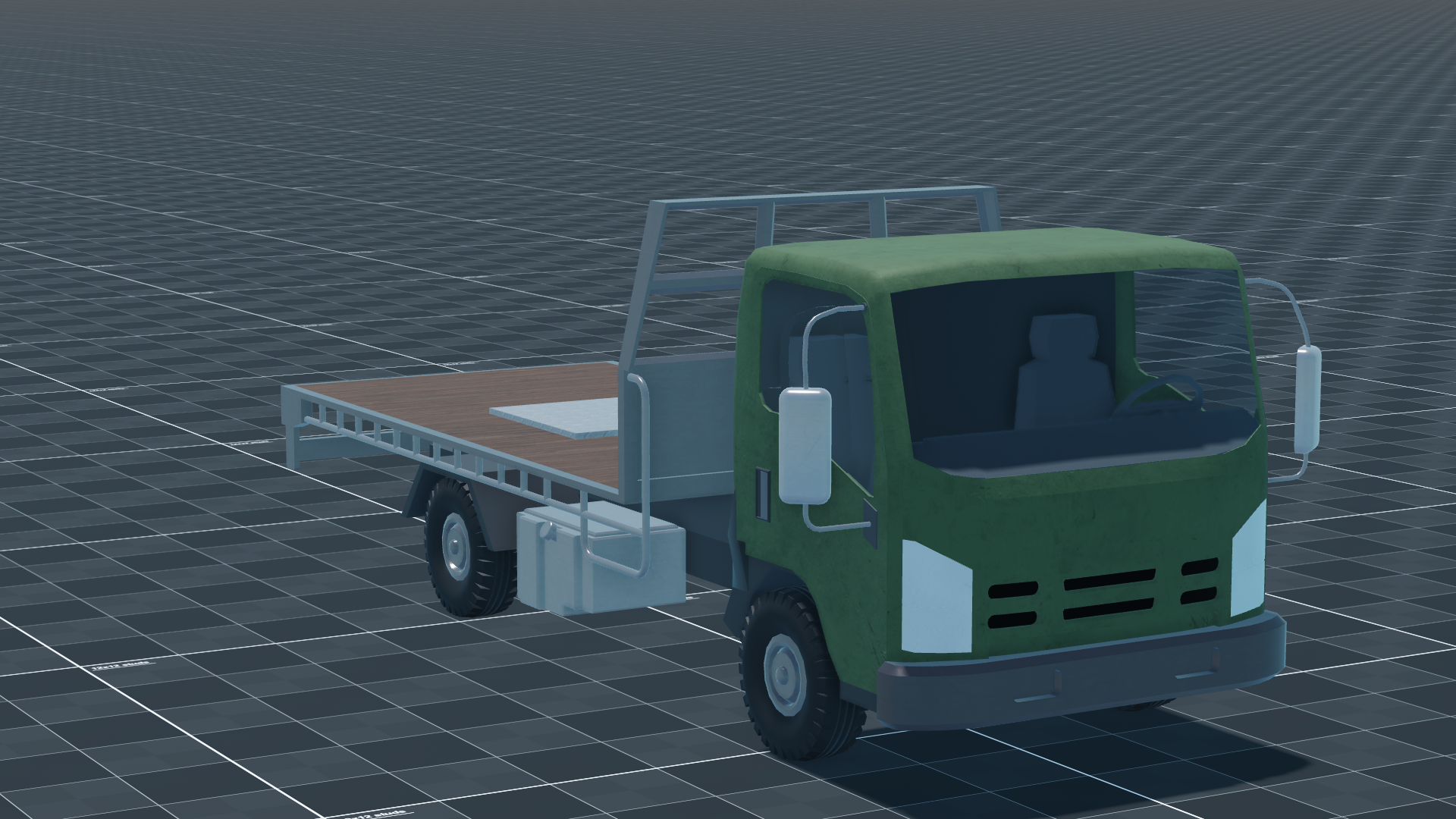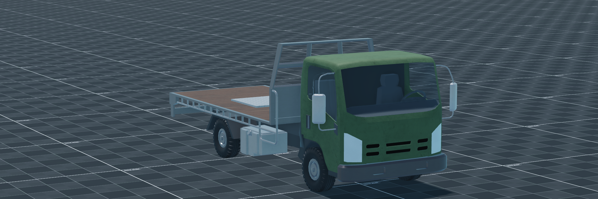 The bigTruck is a Flatbed Truck used for logistics and transport. It is the MiKi Truck Company Model 2, a wheeled utility vehicle with a large cargo bed. Operated by a crew of two—a driver and one passenger—it has a gross weight of 4 t. A 3VZ-E V6 diesel engine produces 150 hp for a power-to-weight ratio of 37.5 hp/t, giving a top speed of 110 km/h forward and 15 km/h in reverse. The vehicle is unarmed and relies on mobility for survivability.