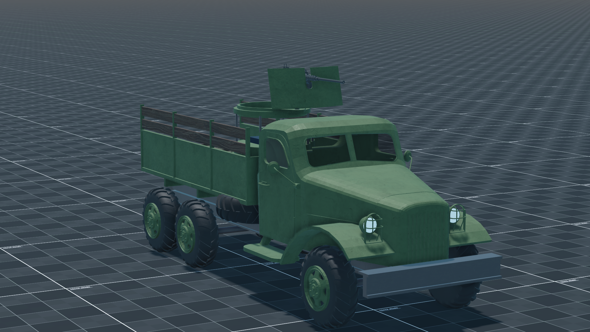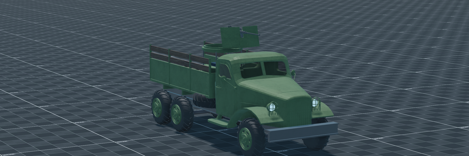 The Supply Truck is a Supply Truck — a wheeled logistics and troop carrier with minimal armour, intended for moving infantry and cargo rather than direct combat. In concept it resembles militarized medium trucks such as the M939 or similar 6×6 cargo trucks used for general support. The 11-tonne vehicle carries a driver, a gunner, and five passengers and is powered by a 6CTA8.3 IMO 1 diesel producing 240 horsepower for 21.8 hp/t and a top speed of 89 km/h. The gunner operates a stabilized 12.7mm M2 machine gun in an open mount for self-defense against infantry and light threats, with a 1x sight. The vehicle is resistant only to small arms and relies on speed and avoidance rather than protection.