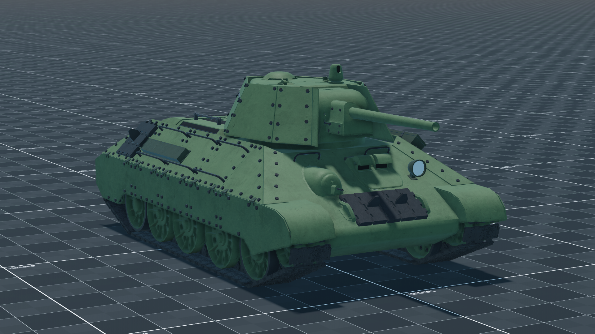 - The T-34E is a Medium Tank and an uparmoured variant of the Soviet T-34, the "E" suffix denoting ekranirovanniy (screened) with added armour packages. The T-34 was the Red Army's principal medium tank of the Second World War, and appliqué armour was one of several field upgrades applied to improve survivability. The 30.6-tonne tracked vehicle is crewed by four — driver, gunner, bow gunner, and loader — and powered by a Model V-2-34 diesel producing 500 horsepower for 16.3 hp/t and 55 km/h.